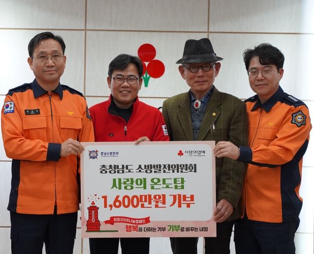 한방통신사 신유철기자 기자 | 충청남도 소방발전위원회(소방정책 자문·협의기구)는 지난 30일 연말연시 이웃돕기 성금 모금인 ‘사랑의 온도탑’에 성금 1600만 원을 기탁했다고 1일 밝혔다.