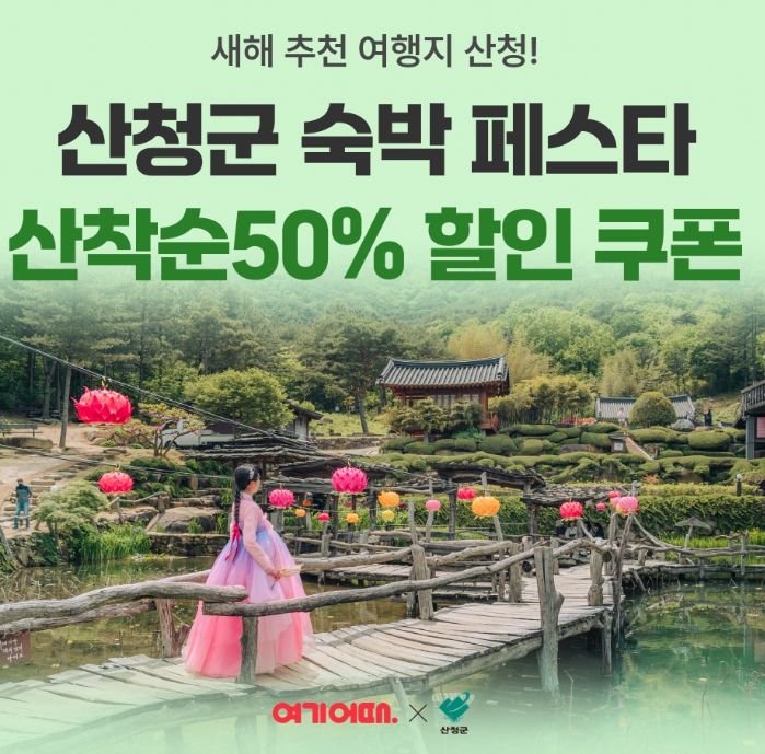 이번 행사는 여행 플랫폼 ‘여기어때’와 협업해 진행되며, 행사 기간 동안 산청군 내 입점 숙박업소를 대상으로 50% 숙박 할인 쿠폰(최대 5만 원, 선착순)을 제공한다.