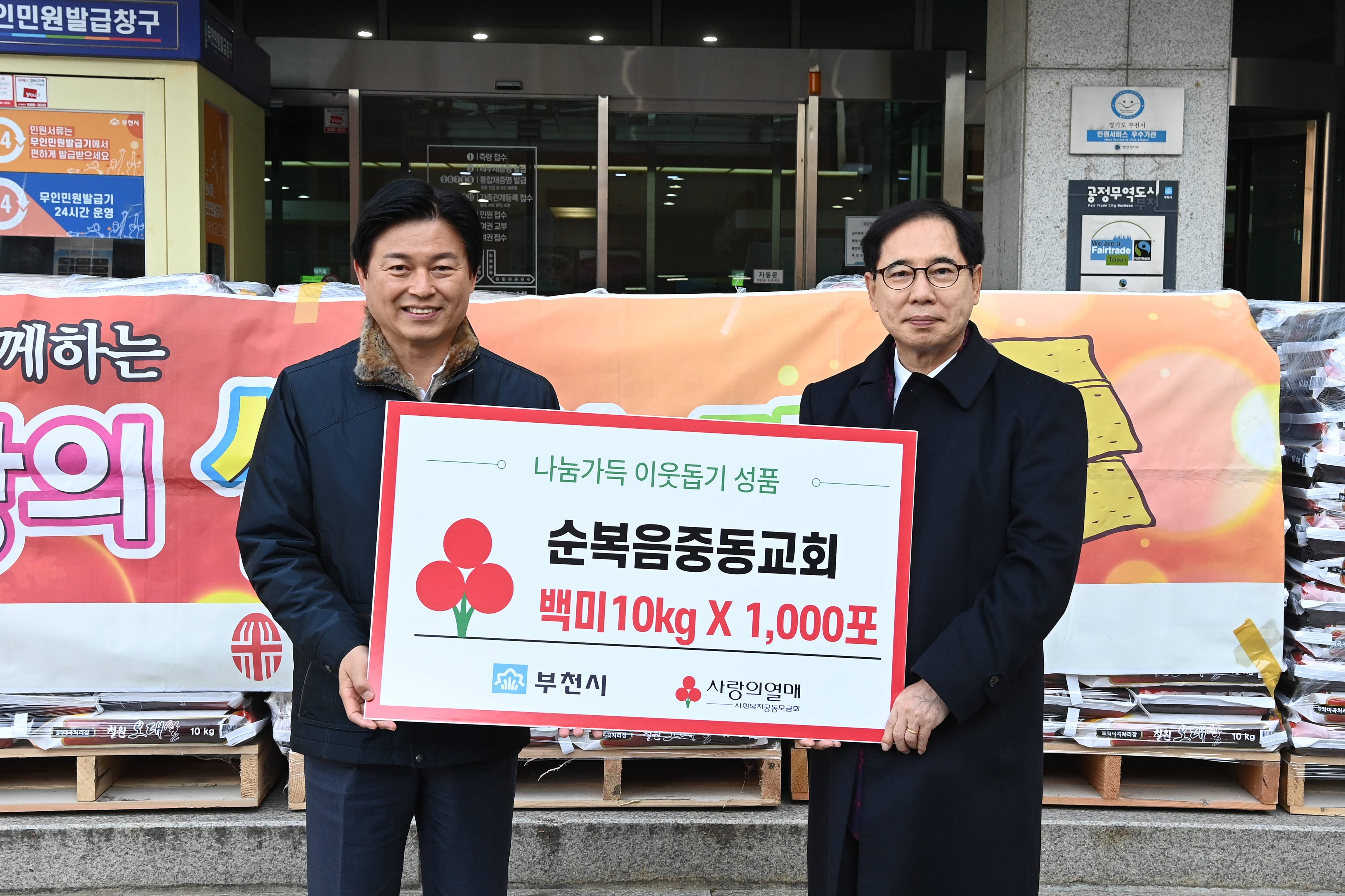부천시는 지난 2일 순복음중동교회(위임목사 김경문)에서 4천2백만 원 상당의 쌀 1,000포를 전달했다고 밝혔다.
