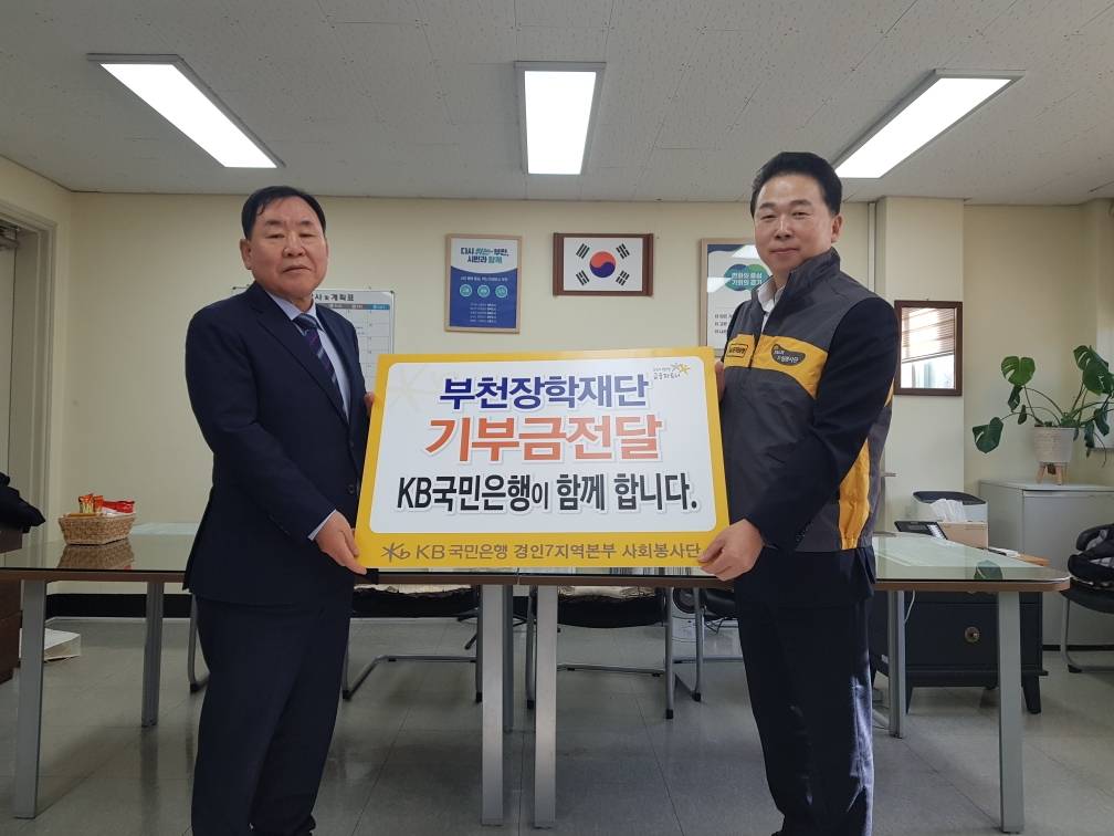 KB국민은행 신중동역종합금융센터(본부장 오순영)는 지난 12월 5일 부천의 교육발전과 지역인재육성을 위해 (재)부천장학재단(이사장 정상열)에 장학금 5백만원을 기탁했다.