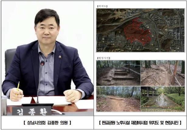 김 의원은 “판교 입주 이후 17년 동안 판교공원에 대한 전면적인 보수는 지난해에 이어 이번이 처음”이라며 “판교공원은 인근 주민들이 일상적으로 이용하는 대표적인 생활권 공원임에도 불구하고, 그간 산책로 훼손과 토사 유실 등으로 안전 문제가 반복적으로 제기돼 종합적인 정비가 시급한 상황이었다”고 밝혔다.