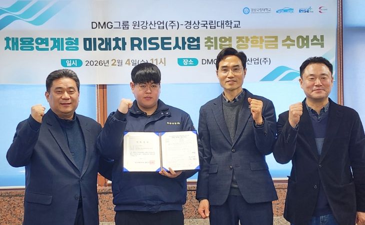 한방통신사 신유철기자 기자 | 경상국립대학교는 2월 4일 오전 11시 함안군에 소재한 원강산업(주) 회의실에서 ‘채용연계형 미래차 RISE사업 취업 장학금 수여식’을 개최했다.