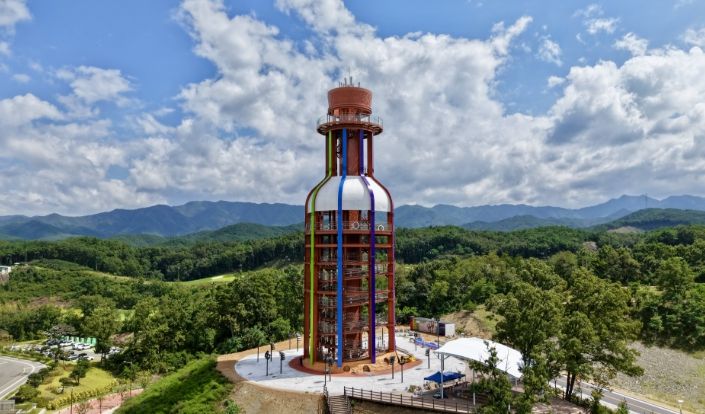 영동와인전망대는 총사업비 90억 원을 투입해 조성된 높이 50m 규모의 조형 전망대로, 2023년부터 단계적으로 사업을 추진해 지난해 12월 모든 시설 공사를 완료했다.