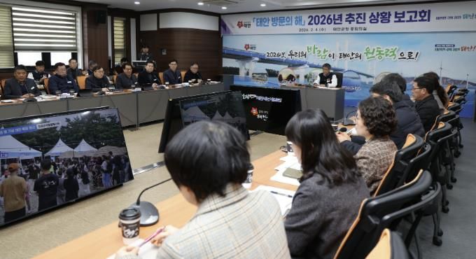 군은 지난 4일 군청 중회의실에서 부군수와 실·국장, 전 부서장 및 읍·면장 등 39명이 참석한 가운데 ‘2026 태안 방문의 해 추진상황 보고회’를 개최했다.