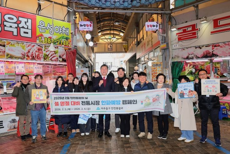한방통신사 신유철기자 기자 | 인천 미추홀구는 설 명절을 앞두고 5일부터 6일까지 총 이틀간 관내 전통시장을 방문해 ‘동절기 한파 예방 캠페인 및 화재 대비 집중 안전 점검’을 실시한다.