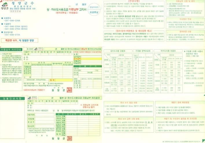 한방통신사 신태공 기자 | 청양군이 군민의 소중한 개인정보를 보호하고 고지서 가독성을 높이기 위해 상·하수도 요금 고지서를 기존 지로형에서 ‘봉합형’으로 전면 개편한다.