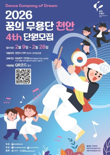 한방통신사 신태공 기자 | 천안문화재단이 지역 아동의 예술적 감수성과 협업 역량을 키우는 ‘2026 꿈의 무용단 천안’ 단원을 9일부터 28일까지 모집한다.