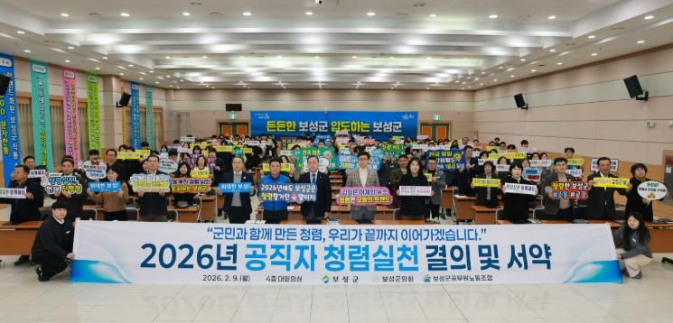 한방통신사 신다은기자 기자 | 보성군은 지난 9일 보성군청 대회의실에서 보성군, 보성군의회, 보성군공무원노동조합이 공동 참여한 ‘2026년 반부패·청렴 실천 결의 및 서약식’을 개최했다고 밝혔다.