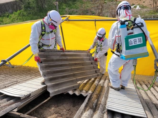 오래된 건물을 철거할 때 슬레이트나 벽면 내부에 석면이 확인되면 반드시 전문 업체에 처리를 의뢰해야 한다.
