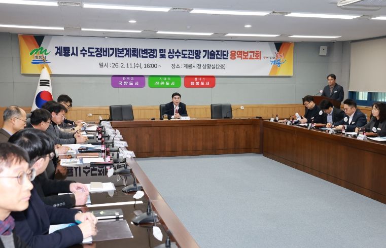 한방통신사 신태공 기자 | 충남 계룡시는 11일 시청 상황실에서 ‘계룡시 수도정비계획(변경) 용역’ 보고회를 개최했다고 밝혔다.