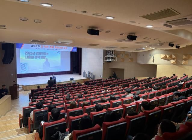 한방통신사 신유철기자 기자 | 시흥시는 지난 2월 11일 시청 늠내홀에서 전 직원을 대상으로 ‘2026년 경제 전망과 시흥의 정책 방향’을 주제로 한 경제 특강을 진행했다.