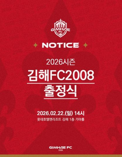 한방통신사 신유철기자 기자 | K리그2 무대에 첫 도전장을 내미는 김해FC2008(이하 김해FC)이 오는 22일 오후 2시, 롯데호텔앤리조트 김해에서 ‘2026시즌 출정식’을 개최한다.