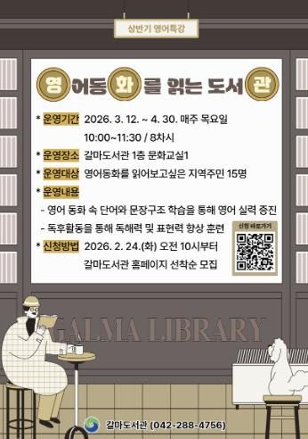 한방통신사 신태공 기자 | 대전 서구 갈마도서관은 아이부터 어른까지 함께하는 영어 독해 강좌를 운영한다.