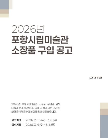 한방통신사 신유철기자 기자 | 포항시립미술관은 13일부터 내달 6일까지 ‘2026년 포항시립미술관 소장품 구입 공고’를 진행한다.