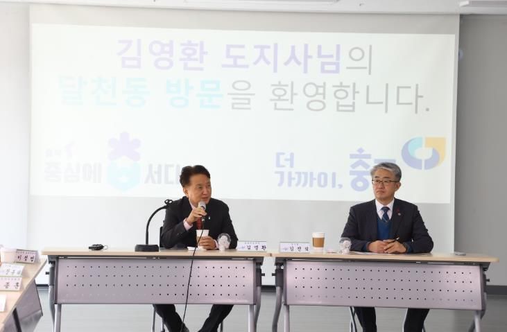 김 지사는 이날 통합돌봄 관계자와의 오찬간담회를 시작으로 달천동 행정복지센터를 방문해 생활 SOC사업 운영 현장을 확인하고 주민 주도의 도시재생 사업의 성과를 격려했다.