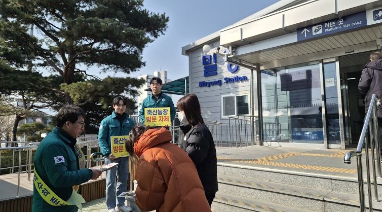 이번 캠페인은 명절 기간 중 귀성·귀경객과 차량 이동이 늘어남에 따라 가축전염병 유입 위험이 커질 것에 대비해 마련됐다. 시는 역사 이용객을 대상으로 가축방역 수칙이 담긴 홍보물을 배부하고, 축산농가 방문 자제와 개인위생 관리 철저 등을 집중적으로 홍보했다.