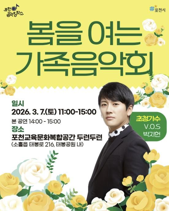 한방통신사 신유철기자 기자 | 포천시는 오는 3월 7일 포천시 교육문화복합공간 두런두런에서 ‘포천음악창작소, 봄을 여는 가족음악회’를 개최한다.