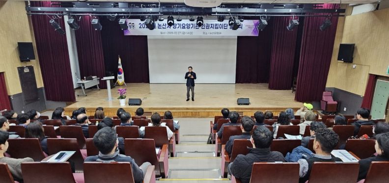 한방통신사 신태공 기자 | 논산시가 27일 입소 어르신의 인권을 강화하기 위한 ‘2026년 논산시 장기요양기관 인권지킴이 발대식’을 개최했다.