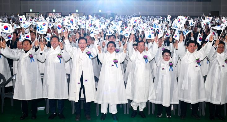 기념식은 개식 선언을 시작으로 국민의례, 독립선언서 낭독, 유공자 표창 수여, 기념사, 3·1절 노래 제창, 만세삼창 순으로 엄숙하게 진행됐다. 특히, 국민의례 중 애국가 제창 순서에서는 이 지사와 도청 간부 공무원들이 직접 무대에 올라 함께 제창했다.
