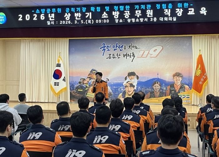 한방통신사 신유철기자 기자 | 광명소방서는 5일 본서 3층 대회의실에서 전 직원을 대상으로 2026년 상반기 소방공무원 직장교육을 실시했다.