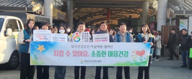 한방통신사 신다은기자 기자 | 곡성군정신건강복지센터는 지난 2월 곡성군 기차마을 전통시장에서 생명존중·자살예방 인식개선 캠페인을 추진했다고 5일 밝혔다.