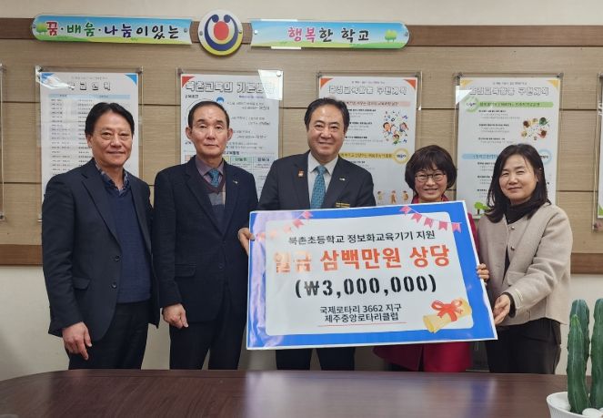 제주중앙로타리클럽 이성만 회장은 “북촌초등학교 학생들이 다양한 경험을 통해 꿈을 키워갈 수 있도록 앞으로도 물심양면으로 지원을 아끼지 않겠다”며 따뜻한 격려와 응원의 메시지를 전했다.