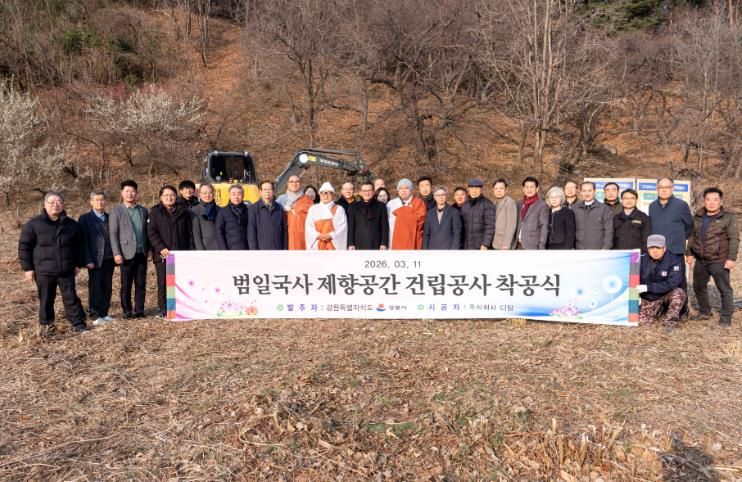 이날 착공 법회에는 김홍규 강릉시장을 비롯해 범일국사 선양회 회장을 맡고 있는 등명낙가사 주지 청우 스님과 범일국사선양회원 등 관계자 약 80명이 참석한 가운데 진행됐다.