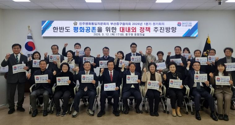 한방통신사 신유철기자 기자 | 민주평화통일자문회의 부산중구협의회(협의회장 김현진)는 3월 12일 오후 5시 중구청 중회의실에서 중구청장, 자문위원 등 30여 명이 참석한 가운데‘한반도 평화공존을 위한 대내외 정책 추진방향’을 주제로‘2026년 1분기 정기회의’를 개최했다.