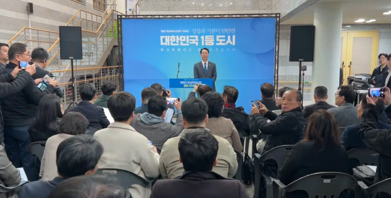정 시장은 18일 오후 기자회견을 통해 “지난 4년이 화성의 기초를 다지는 시간이었다면, 앞으로의 4년은 대한민국 1등 도시 화성을 완성하는 시간이 될 것”이라며 출사표를 던졌다.