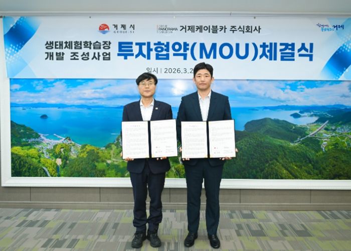 한방통신사 신유철기자 기자 | 거제시는 23일, 거제케이블카 주식회사와 지역 관광 활성화 및 생태교육 인프라 확충을 위한‘생태체험학습장 개발 조성사업’투자협약(MOU)를 체결했다.