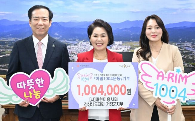 한방통신사 신유철기자 기자 | 거창군은 지난 24일 (사)대한미용사회 경상남도지회 거창군지부(지부장 구희자)가 지역내어려운 이웃을 돕기 위한 성금 100만 4천 원을 아림1004운동에 기부했다고 밝혔다.