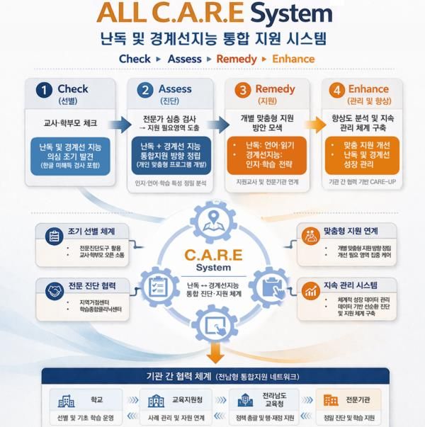 한방통신사 김성의 기자 | 전라남도교육청은 경계선 지능 학생과 난독 학생의 맞춤 지원을 위한 ‘전남형 기초학력 보장 체계’를 한층 강화한다.