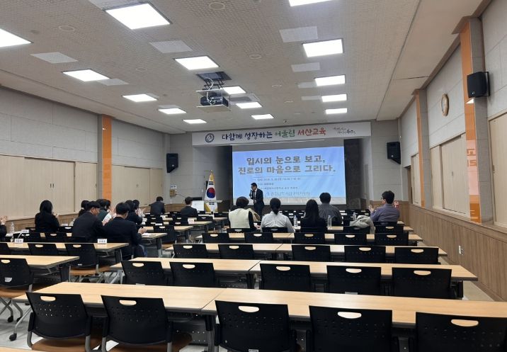 한방통신사 신태공 기자 | 서산교육지원청은 지난 26일 대회의실에서 관내 초·중·고등학교 진로 전담 교사 및 교감 33명을 대상으로 ‘입시의 눈으로 보고, 진로의 마음으로 그리다’ 연수를 개최하여 학교 현장의 진로 교육 역량을 한 차원 높였다. 본 연수는 급변하는 대학 입시 제도와 고교학점제 등 교육 정책의 변화 속에서 데이터 기반의 정교한 분석력을 확보하고, 이를 학생 개개인의 고유한 특성과 연결하는 ‘공감 중심의 진로 설계’ 체계를 정착시키기 위해 마련됐다.