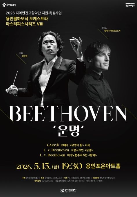 한방통신사 신유철기자 기자 | 용인문화재단은 오는 5월 15일 오후 7시 30분 용인포은아트홀에서 ‘2026년 지역민간교향악단 지원·육성사업’의 첫 공연으로 용인필하모닉오케스트라의 기획공연 '마스터피스 시리즈 Ⅷ - 베토벤 ‘운명’'을 선보인다.