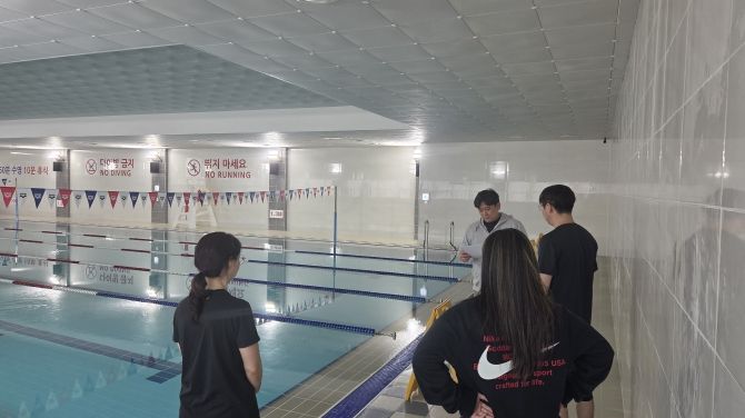 교육은 두 가지 축으로 진행됐다. 먼저 실내 수영장 환경에 특화된 안전근무 요령을 중심으로 익수 사고 발생 시 초동 대응 절차, 구역별 감시 포인트, 위험 징후 식별법 등 현장 대응 중심 교육이 이뤄졌다.