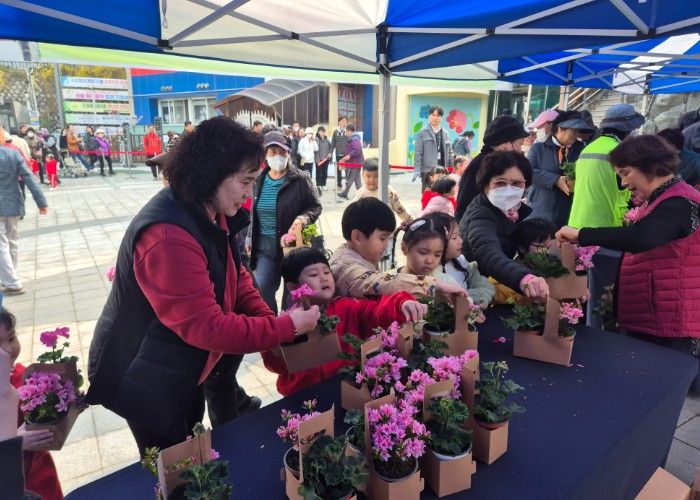 행사는 자유공원, 70계단쉼터, 연안동 행정복지센터에서 오전 10시부터 11시까지 1시간가량 진행됐다. 특히 제라늄과 방울철쭉 등 초화 5,000본을 1인당 2본씩 모두 배부하며 나무 심기와 녹색 자원의 가치를 알리는 데 주력했다.