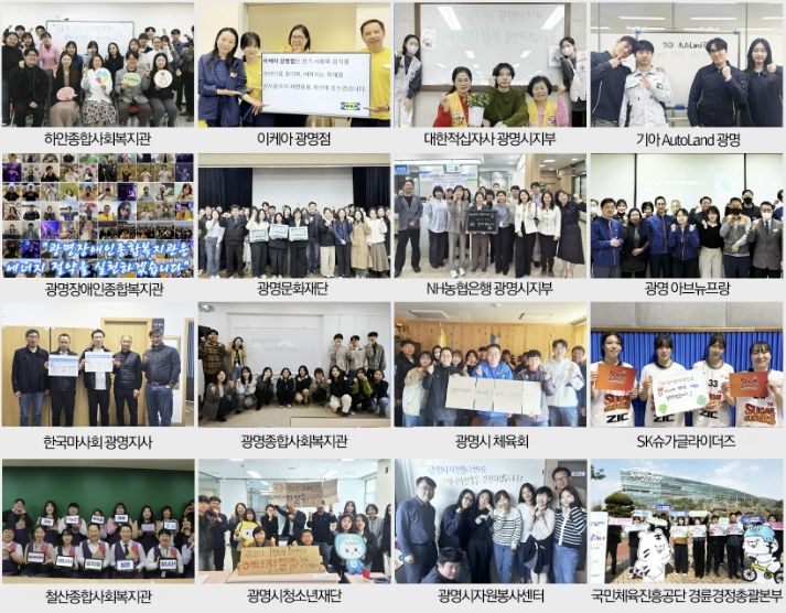 이번 선언에는 광명시자원봉사센터, 광명문화재단, 광명시청소년재단, 광명시체육회, 광명종합사회복지관, 철산종합사회복지관, 하안종합사회복지관, 광명장애인종합복지관, 한국마사회 광명지사, 국민체육진흥공단 경륜경정총괄본부, 대한적십자사 광명시지부, 광명 아브뉴프랑, 기아 오토랜드 광명, 이케아 광명점, NH농협은행 광명시지부, SK 슈가글라이더즈 등 총 16개 기관이 참여했다.