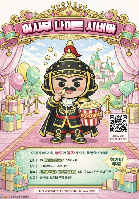 4월 상영작은 가족 단위 관람객을 위한 애니메이션 '어쩌다 공주, 닭냥이 왕자를 부탁해!'로 선정했다. 공주·왕자 테마 시네마로 운영해, 관람객이 동화 속 주인공이 된 듯한 경험을 할 수 있도록 핑크카펫 입장 연출 및 테마형 포토존을 함께 운영한다.