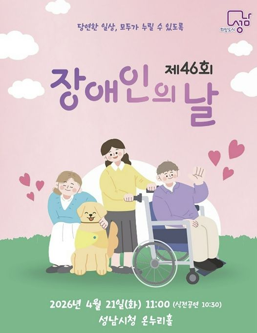 한방통신사 신유철기자 기자 | 성남시는 ‘제46회 장애인의 날(4.20)’을 맞아 오는 4월 21일 오전 11시 시청 1층 온누리에서 기념식을 연다.