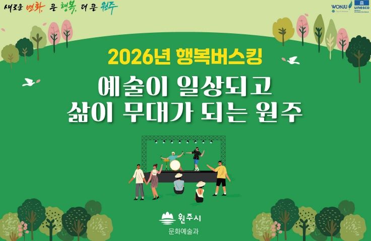 한방통신사 양호선기자 기자 | 원주시는 지역 예술가들의 공연 기회를 확대하고 시민들에게 다양한 문화서비스를 제공하기 위해 ‘2026년 상반기 원주행복버스킹’을 운영한다.