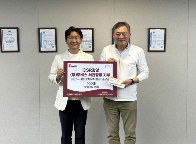 이번 기부는 서천군과 ㈜토비스가 체결한 기업의 사회적 책임(CSR) 경영 협약의 일환으로 추진됐으며, 전달된 티켓은 관내 취약계층 어르신들의 문화체험 기회 확대를 위해 활용될 예정이다.