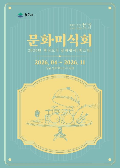 한방통신사 양호선기자 기자 | 원주시는 오는 21일 낮 12시, 건강보험심사평가원 1사옥 앞 야외 공연을 시작으로 ‘2026년 혁신도시 문화미식회’의 막을 올린다. 이어 25일 오후 2시에는 혁신도시 미리내사거리 분수광장에서 버스킹 공연을 진행한다.