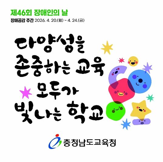 한방통신사 신유철기자 기자 | 충남교육청은 제46회 장애인의 날을 맞아 장애공감문화 확산을 위해 4월 20일 ~ 24일을 ‘장애공감주간’으로 운영한다고 밝혔다.
