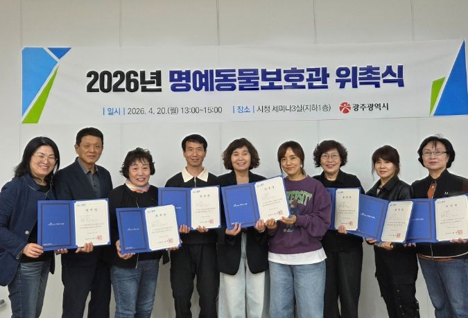 한방통신사 김성의 기자 | 광주광역시는 20일 시청 세미나실에서 성숙한 반려동물 문화 정착과 동물복지 증진을 위한 ‘2026년 명예동물보호관 위촉식’을 개최했다.