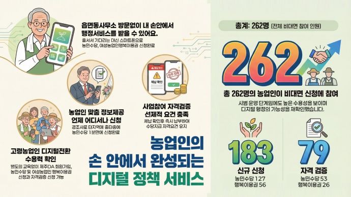 이번 성과를 바탕으로 서비스 안정성을 보완해 고령층까지 아우르는 ‘디지털 농정 생태계’를 구축하고, 이를 농업 정책사업 전반으로 확대해 행정 효율성과 투명성을 극대화한다는 전략이다.