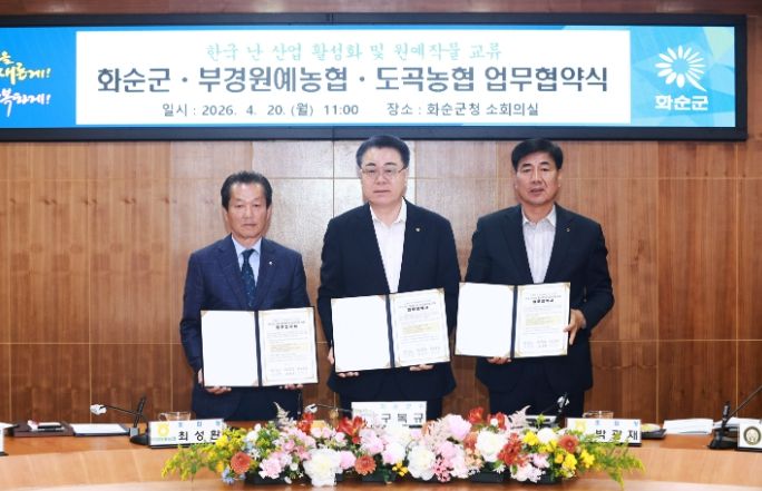 한방통신사 신다은기자 기자 | 화순군은 지난 20일 부경원예농업협동조합(조합장 최성환), 도곡농업협동조합(조합장 박광재)과 함께 한국 난 산업 활성화 및 원예작물 교류를 위한 업무협약(MOU)을 체결했다고 밝혔다.