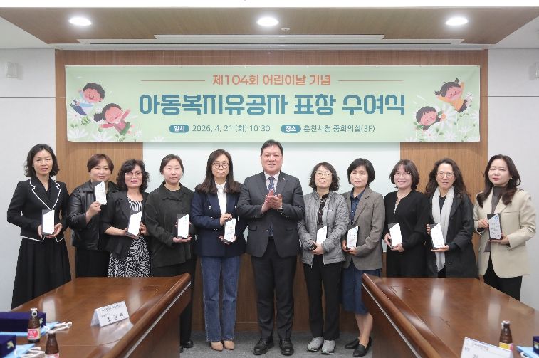 수여식은 21일 시청 중회의실에서 열렸다. 이번 표창 대상자는 총 12명으로 ▲보육시설 6명 ▲아동복지시설 3명 ▲유관기관 2명 ▲춘천시 1명이다. 이들은 아동 양육과 보호, 권리 증진 등 다양한 현장에서 아동복지 향상에 기여한 공로를 인정받았다.
