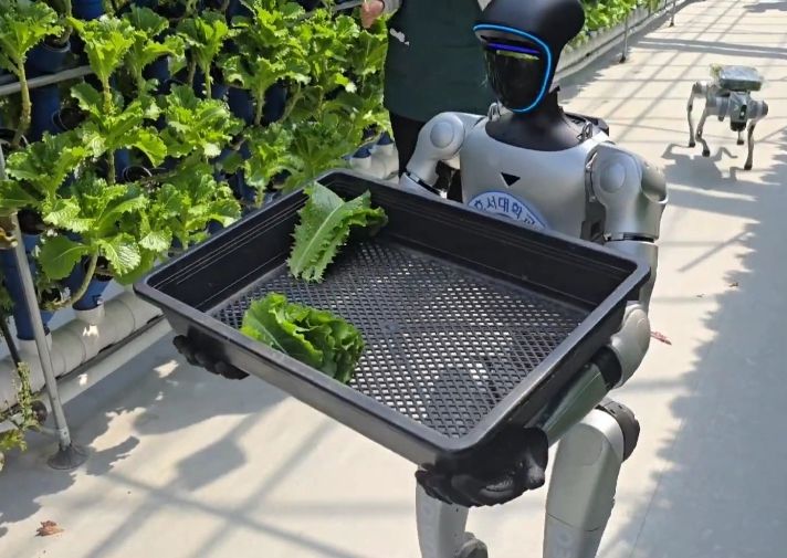한방통신사 신태공 기자 | 아산시는 지난 16일 아산시농업기술센터 내 국내 최초 수직형 스마트팜 온실에서 호서대학교 지능로봇학과 김정주 교수와 로봇융합연구실(RCL) 연구팀이 참여한 가운데, 휴머노이드 로봇과 4족 보행 로봇을 활용한 첨단 농업기술 시연회를 개최했다.