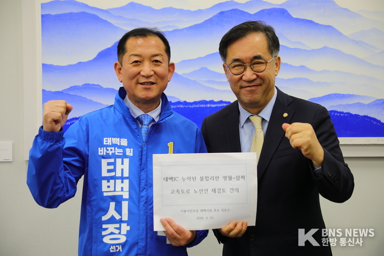 태백IC 설치를 포함한 최적 대안 3가지를 제안한 김 예비후보는 ▶영월~삼척 고속도로 기본설계시 태백IC 설치를 위한 노선 대안 검토 및 타당성 분석 실시 ▶기본설계 용역 과업지시서에 태백시 경유 또는 태백IC 연결 방안을 검토 항목으로 명시 ▶검토 결과를 태백시 및 관련 지자체에 투명하게 공개하고 의견 수렴 절차 진행 ▶필요시, 태백시·강원특별자치도·국토교통부 간 공동 협의체 구성을 통한 최적 노선 도출 등 구체적 건의 사항을 맹 위원장에게 전달했다.