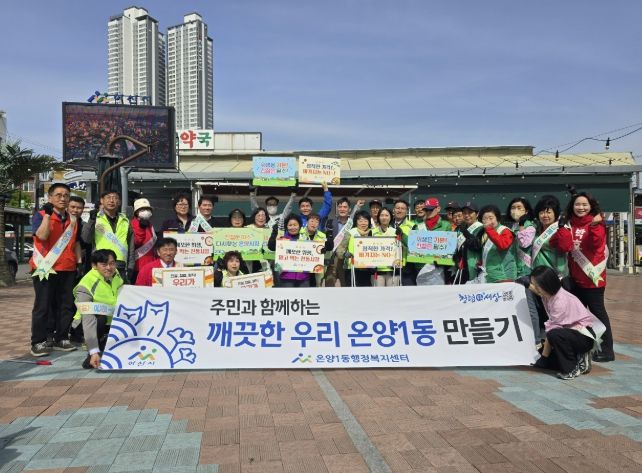 한방통신사 신태공 기자 | 아산시 온양1동은 23일 성웅 이순신 축제를 앞두고 전통시장 상인회와 지역주민단체 등과 함께 ‘건전한 시장 문화 정착 캠페인’과 대청소를 실시했다.